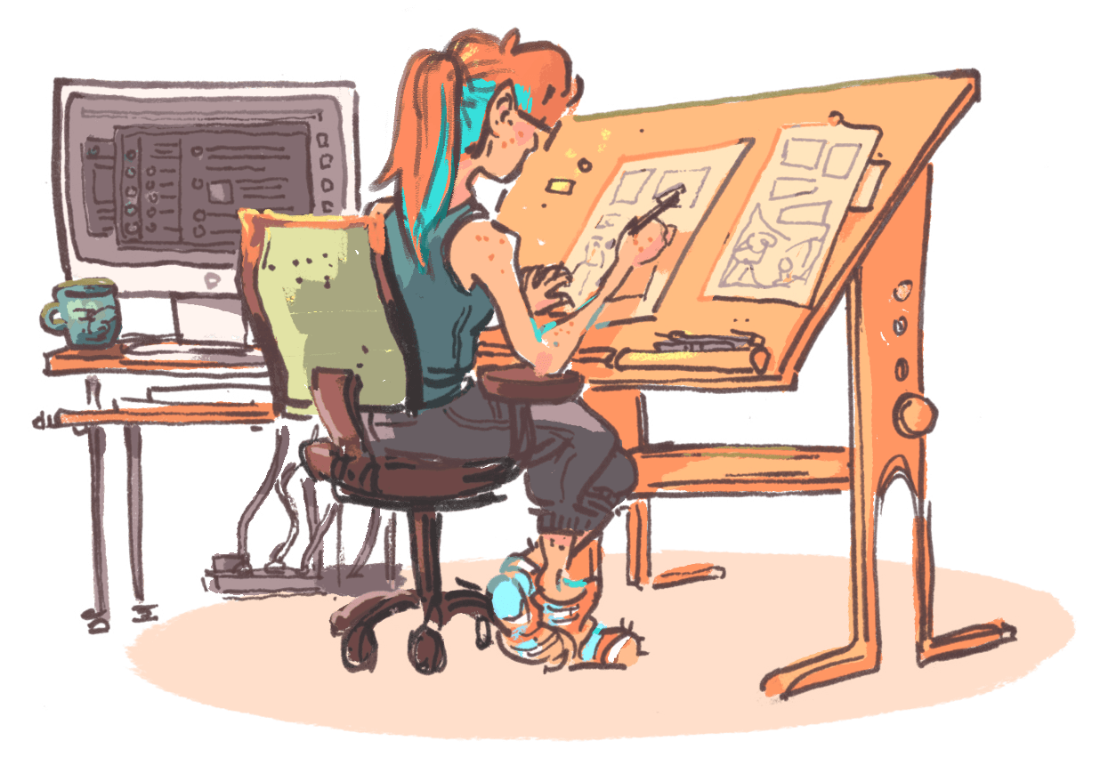 When I’m not drawing or teaching, I like to hang out with my menagerie of pets, play video games on hard mode, and daydream about my next tattoo.